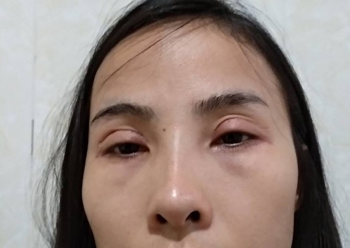- Xuất hiện tình trạng sưng phù khiến mí mắt khó đóng mở.